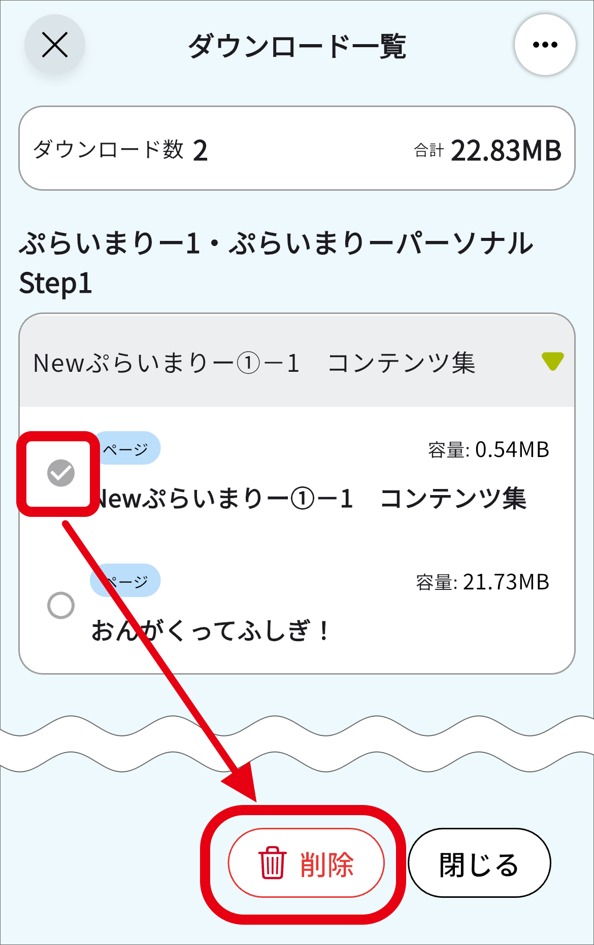 ダウンロードしたコンテンツを見る/削除する