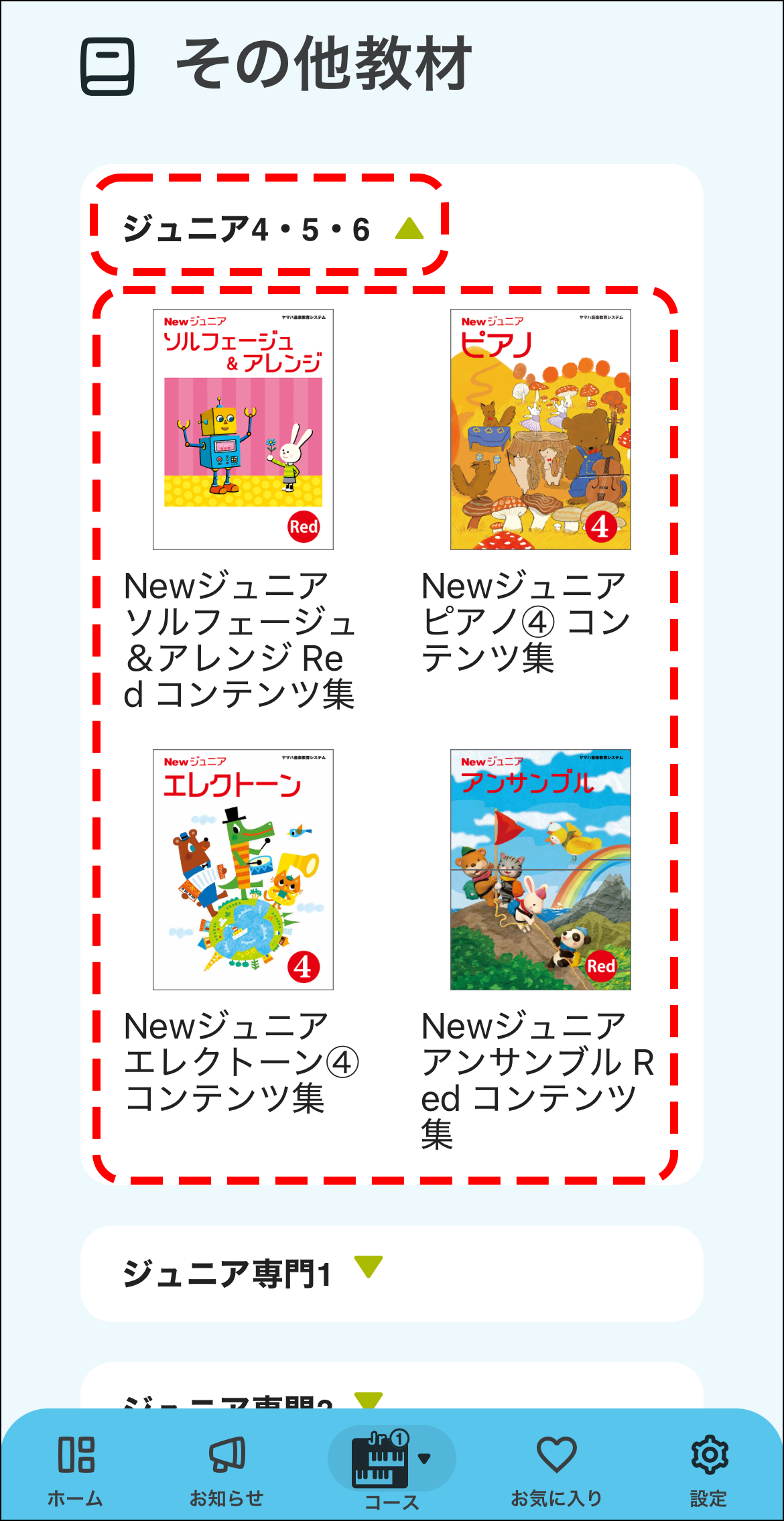 コーストップページの「その他教材」から、ききたい・みたい教材を選択します。